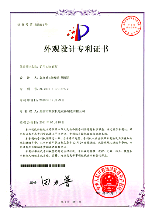 焦作景安公司始終堅持“以科技為先導,以市場為導向”的發展戰略,不斷進行新產品的研制和開發,在國家“六五”到“九五”期間,承擔和參與了國家多項科技攻關項目。并被中國電器工業協會評定為“質量可信產品”。特別是在礦用防爆燈領域,礦用隔爆型半導體(LED)照明燈具,2008年列入國家火炬計劃,獲2009年河南省工業和信息化廳的科技成果二等獎,并擁有多項國家專利。